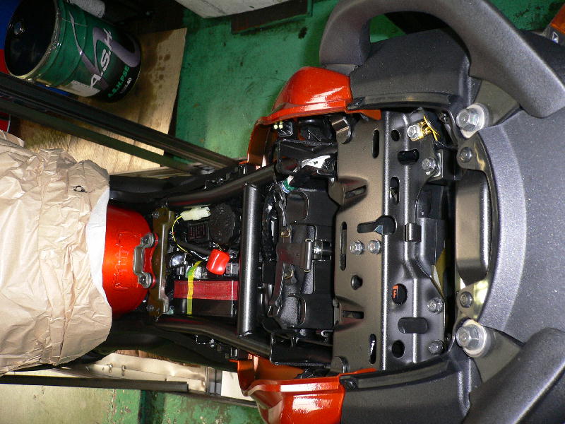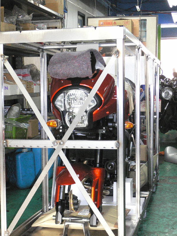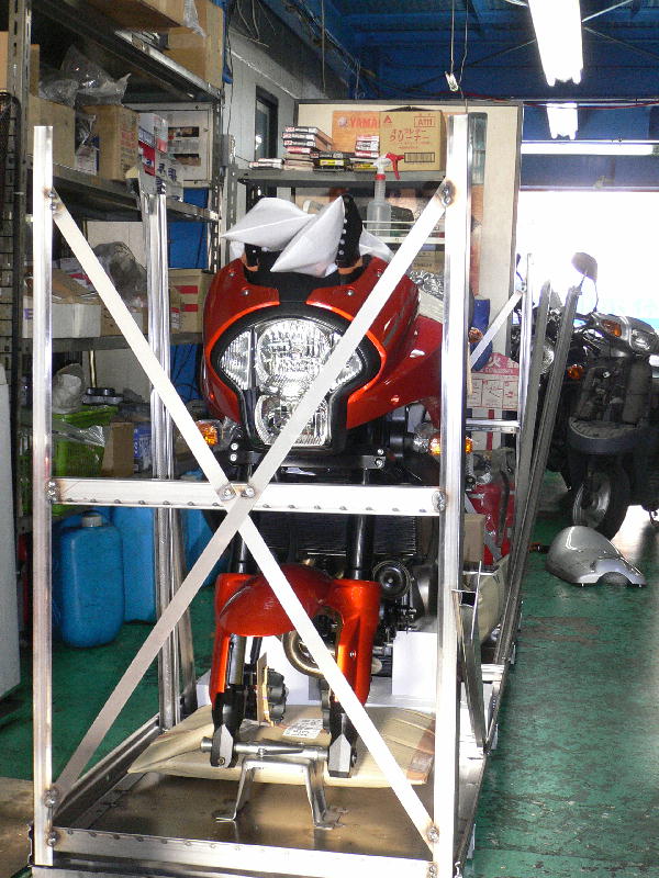 時間が少し早かったためかまだ完成はしてませんでしたが、とりあえず前輪も付きバイクの形になりましたのでじっくり見ました。