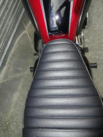 純正シートののタンクに近くなるに従って細く、薄くなるのが気にいらなかったんですが、かなり改善されてるっぽい