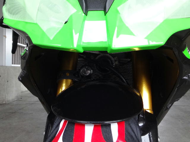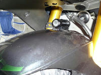 装着は以前の690 DUKEと同じ感じでフロントフォークへ