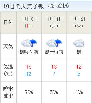 や、集合予定の滋賀北部の天気予報が70%