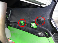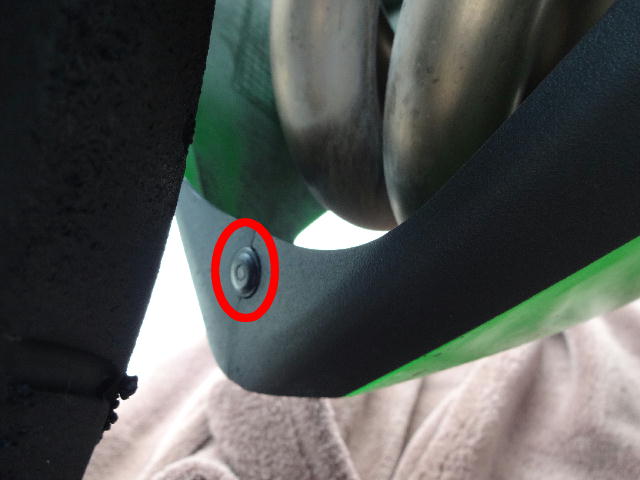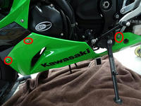 アンダーカウル先端と下側2箇所のクイックリベット(写真の赤丸の部分)を外します