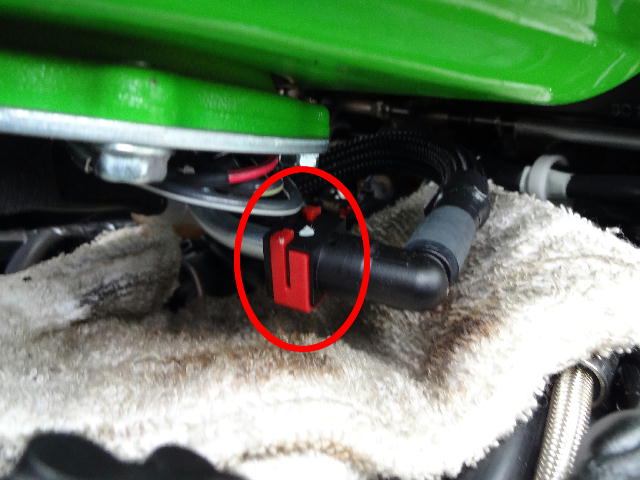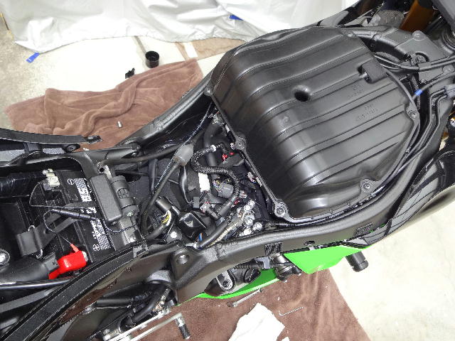タンクからシートの方に伸びてる配線がありますので、カプラーを外します