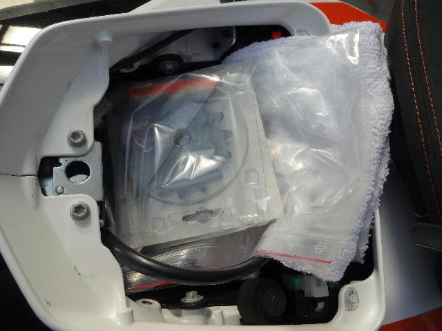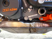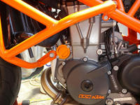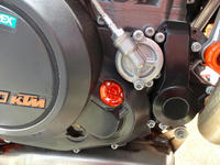 取り敢えず、ワイヤリング穴つきのドレンボルトとオイルフィルターカバーを690 DUKEから取っておいたので装着