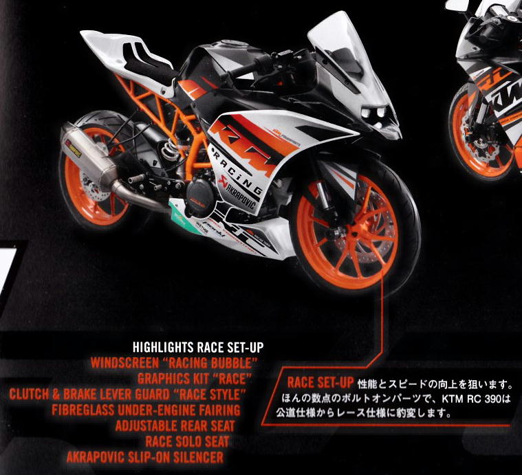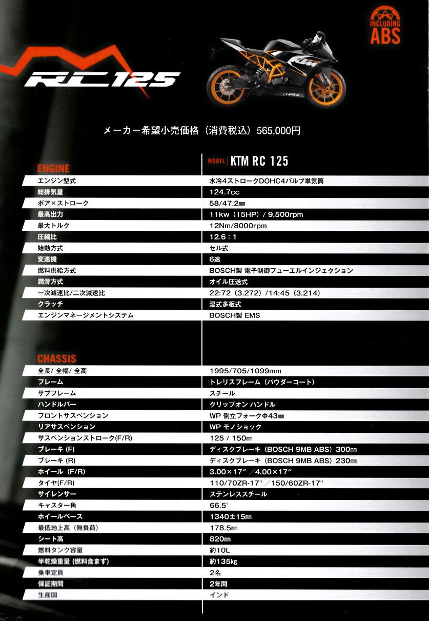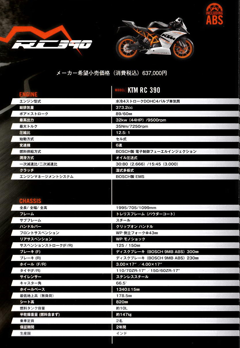 KTM HP にもあるけど 125/390 のスペック