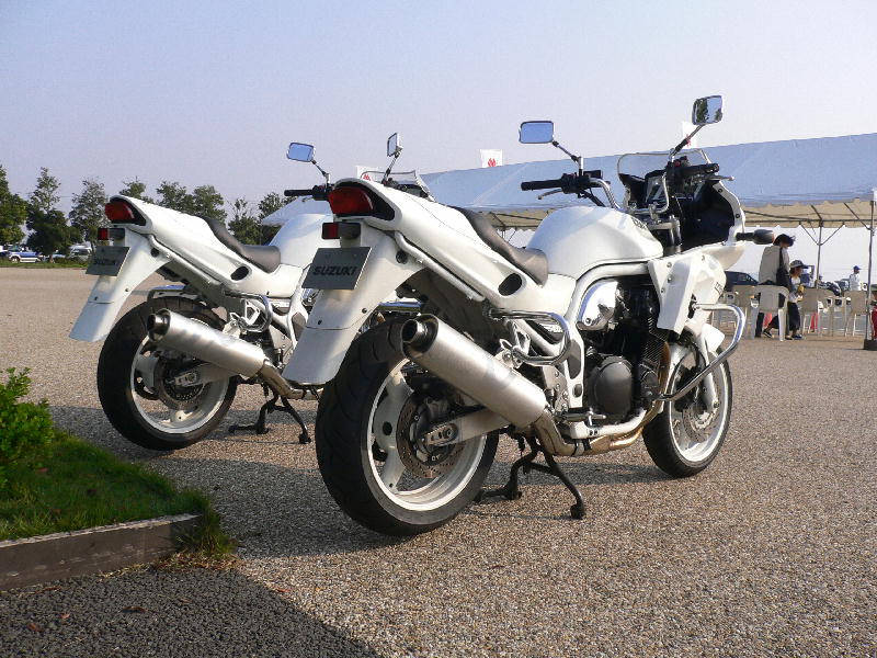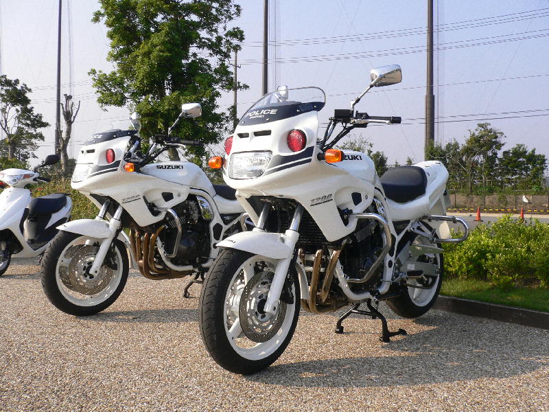 借りた防具類を返却し、先程模範走行をしていたGSF(?)の白バイを見に行きました。