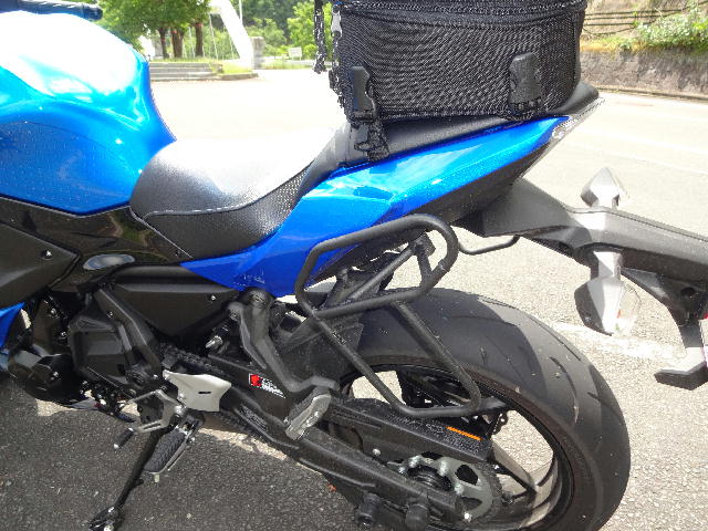 純正品では無く、 手持ちのサイドバッグ を安定して取り付けるために装着しました