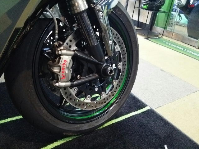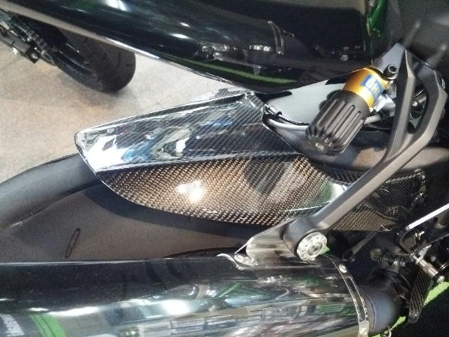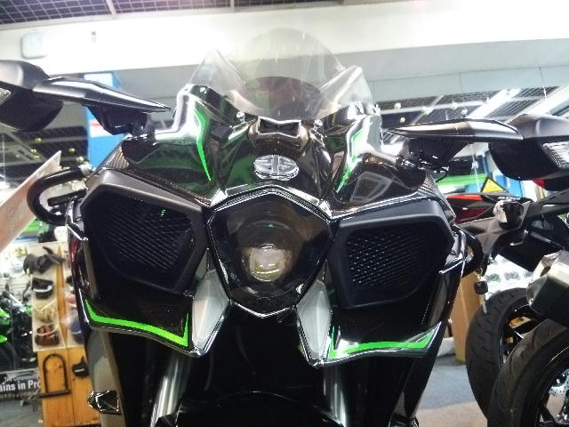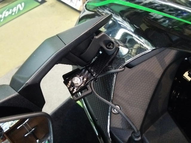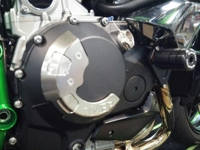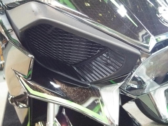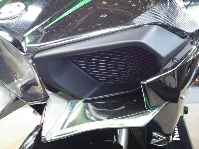 写真左側(乗車すると右側)のダクトはダミーでフィン型の蓋(?)がしてありますが、H2Rの網を仕込んで貰いました