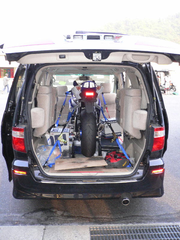 受付は10時ですので、バイクを降ろし、バイクの走行準備をします。