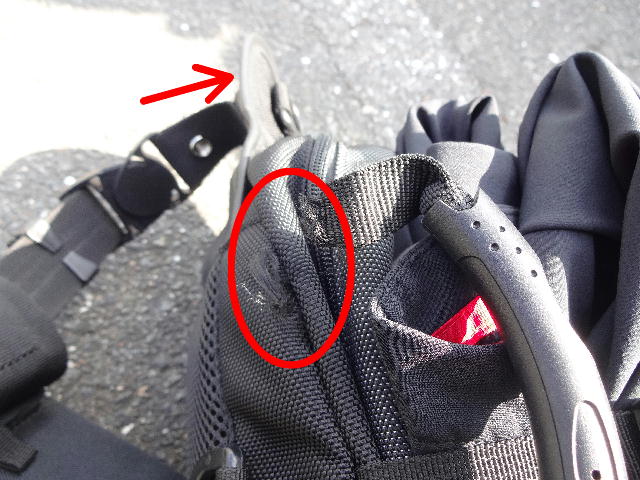 帰宅してから気付いたんですが、矢印の部分も裂けてるというか破れてた(´・ω・`)
