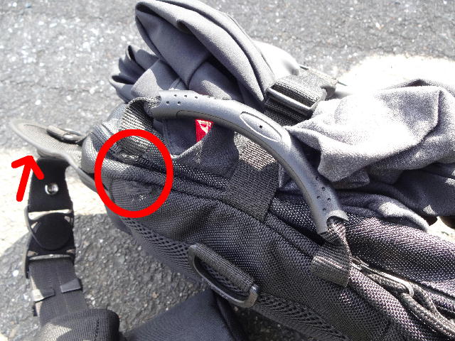 このちぎれ掛かってる方はいつも ラフ&ロードのP.A.S.ポーチ で500のペットボトルぶら下げてるのがまずかったかも(;´Д`)