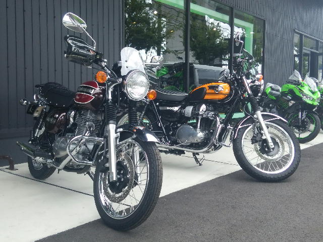 へ点検で預けていたW800 FEをレジアスで引き取り