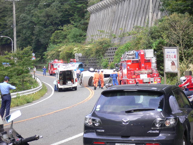 ここからまた美山に向かうわけですが、名田庄を出てすぐ100m位のところで事故ってました。