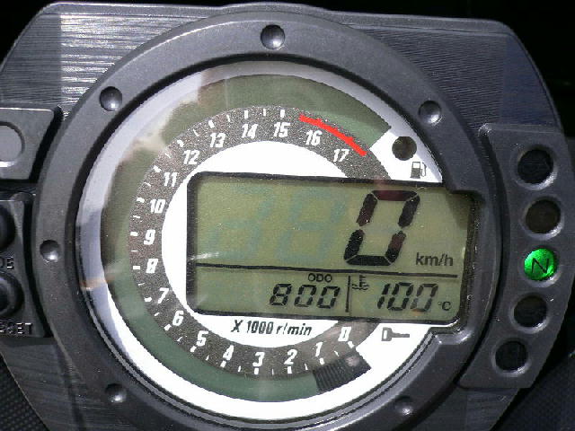 これで慣らし運転の第1段階(800kmを4000回転までで走行)、が終了しましたので、第2段階(1600kmまで6000回転までで走行)に入れます。