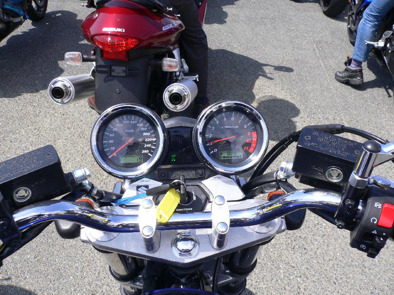 ポジションに関しては足つきも困ることもなくコンパクトなんですが、窮屈感がないGSX-Rいつものポジションです。