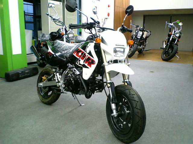 で、さらに在庫一掃セールというのをやってまして、KSR110の白を見せていただきました。