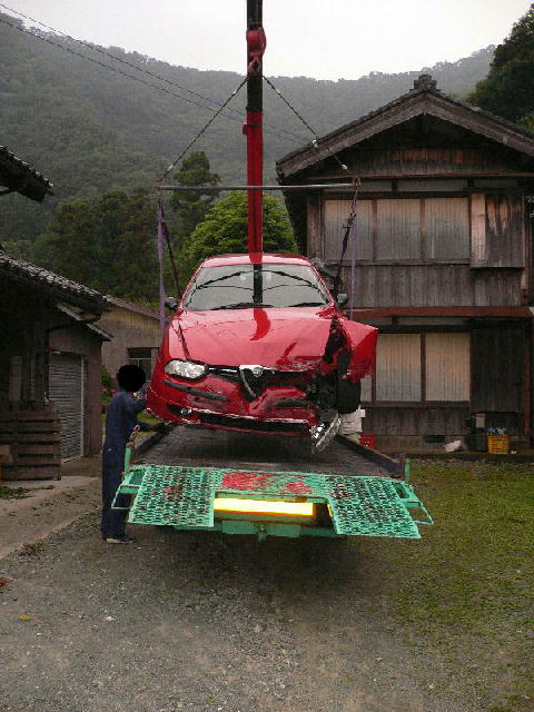 156は一旦レッカー屋さんが預かり、翌日改めてディーラーの方に運ぶと言うことでした。