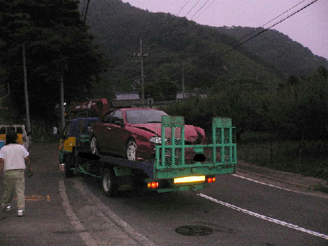 この後駐在所にてディーラーと保険屋さんの両方に今日中のレッカーを依頼し返事を待っていましたがディーラーは翌日になるとのことで結局保険屋さんがレッカーを準備してくれることに。