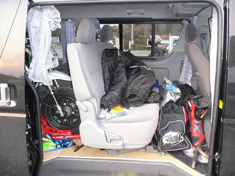 ツナギやブーツなんかの走行用の道具はセカンドシートの所に放り込んでおけますしね