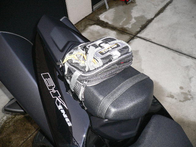 あ、それと深夜走りに行ったとき、タンデムシートに小型のウエストバッグを着けてみました。