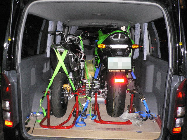 で、そんな感じで過ごしてる内にバイクの準備が出来ましたので、車に積んでみます