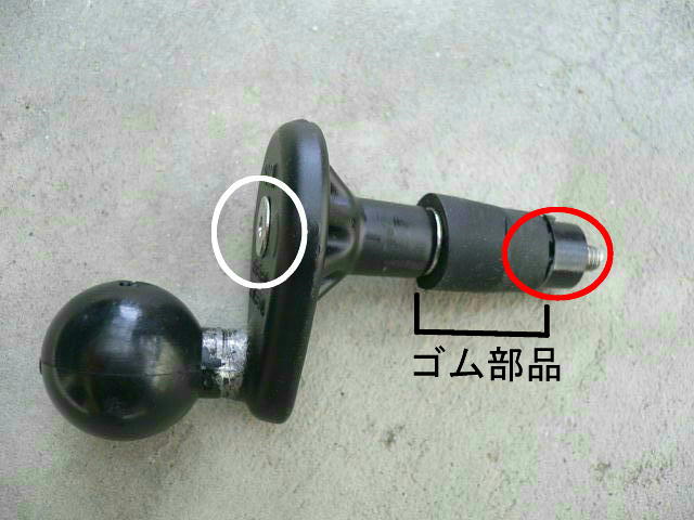 簡単に言うと、ステムに差し込んだ後、白丸のボルトをヘキサゴンで締めると赤丸のナットが真ん中のゴム部品を締め付け膨張するような感じに変形