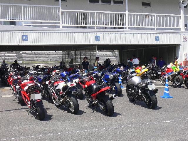 初、中、上級と整列してピットでバイクだけ置いとくみたいでした。