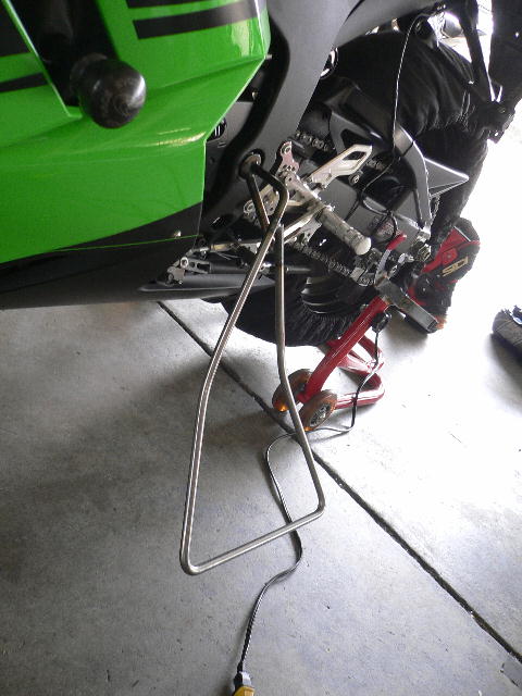 こんな風に両方に差し込んでおけば、リヤスタンドの上げ下ろし時もかなり安心感が高くなります