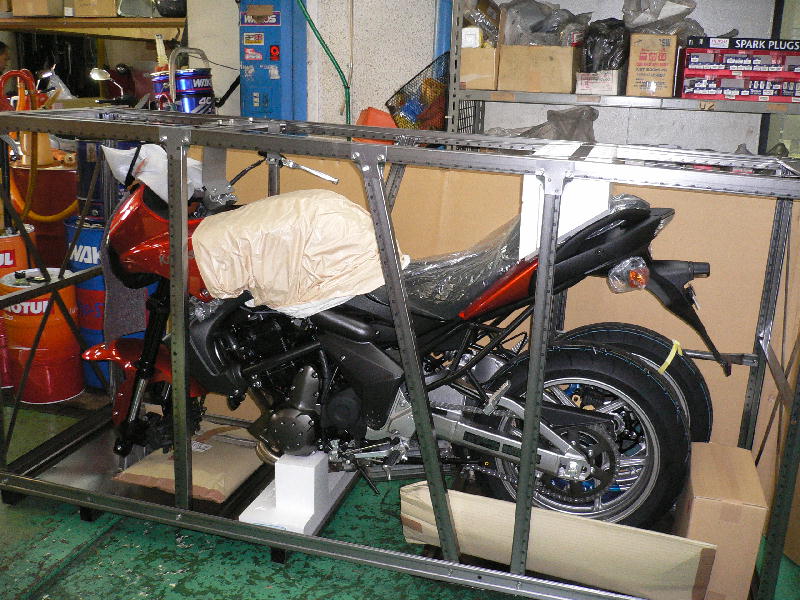 箱の中でバイクを支えてる物です