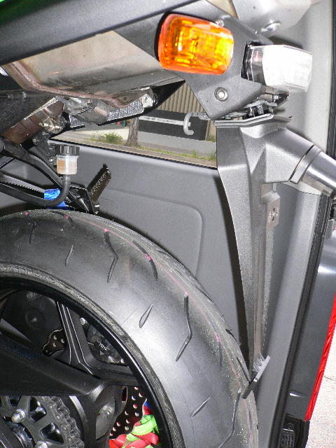 ですので、フェンダーを留めてるネジ4本(正確にはナットですけどねw)を外してフリーにしてみます