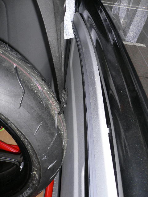 やはりというか当然というか、そのままバックドアを閉めるとフェンダーとナンバー灯が当たってしまいます