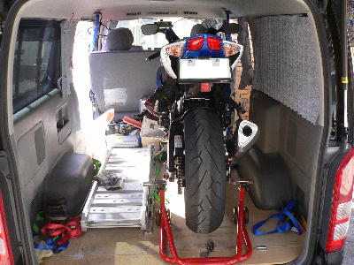 明日、ETC取り付けのためバイク屋にR750を入庫しますので、車に積み込みました