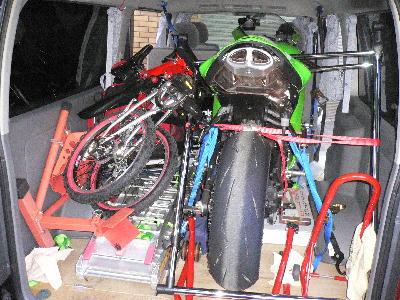 フロントスタンドはサイドスタンド外したときに便利なので使おうと思ってたんですが、車載固定用で使用している物を外すのは面倒なのでもう一台積んでいきますw