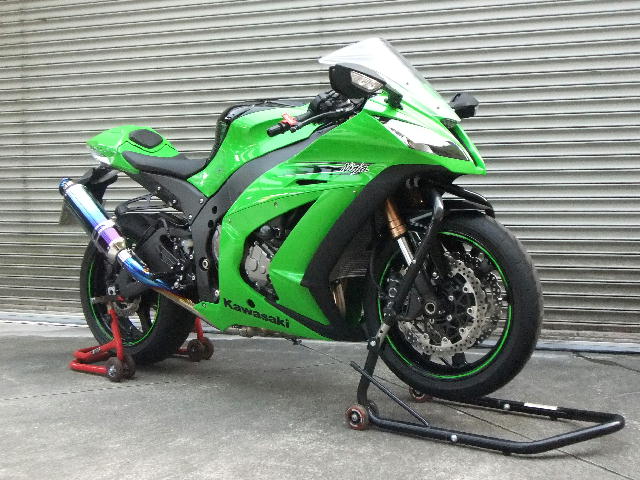 で、まずはフロントスタンドも使ってバイク固定