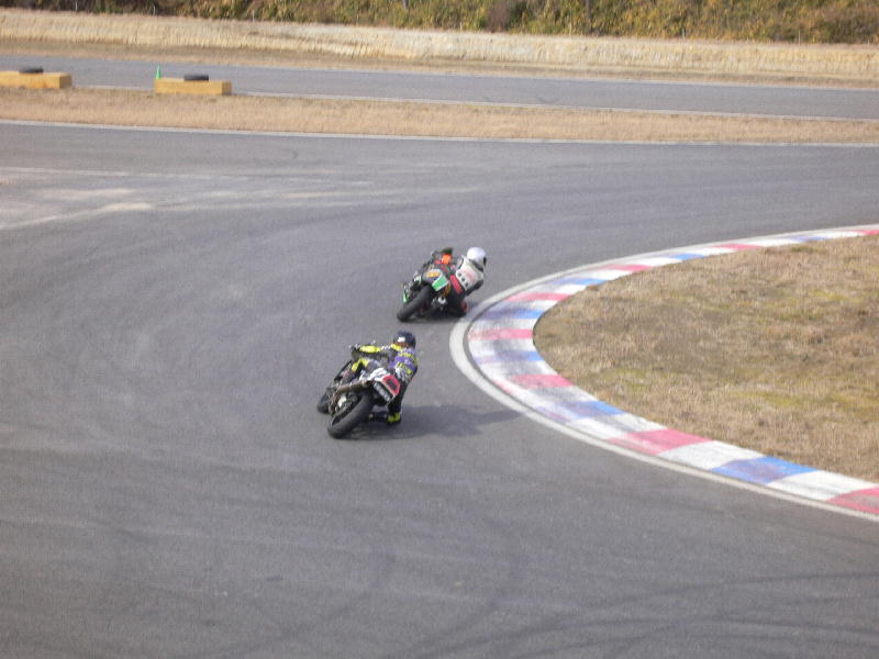 タイヤのグリップが悪いので、ブレーキングが甘いのと、絶対的なバンク角不足です。