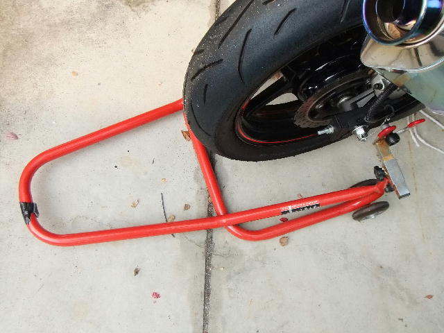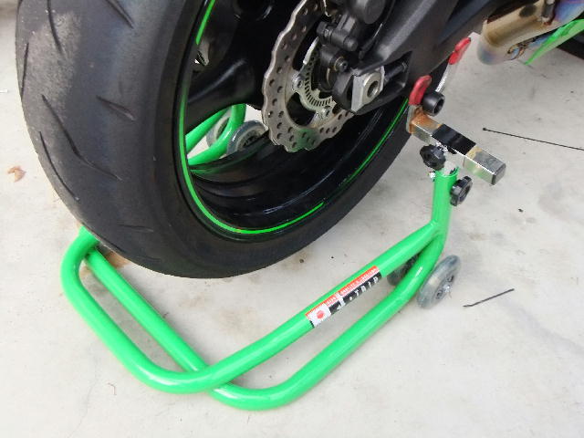 んで、今までフロントスタンドで駐車してたんですが、今日からリヤスタンド導入