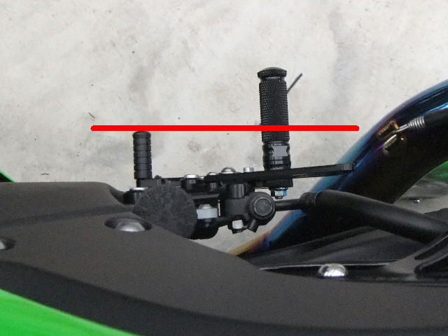 ま、写真の撮り方もあるし、10RもNinjaもバックステップに交換済みだからあくまで目安にしかならないけど、それを差し引いてもDUKEのペダルは確かにかなり短いかな